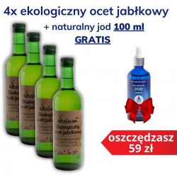Zestaw promocyjny: 4 x Bio ocet jabłkowy 500 ml + naturalny Jod 100 ml